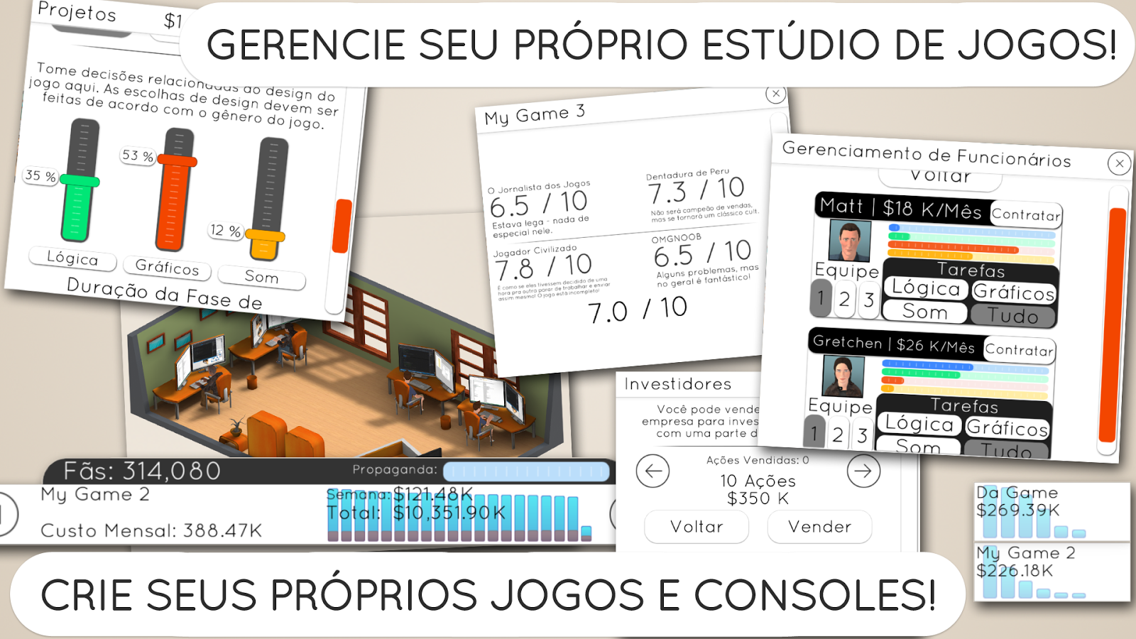 Seja bem-vindo à nova geração de desenvolvimento de jogos! O Magnata dos Estúdio de Jogos 2 te coloca no papel de um desenvolvedor de jogos indie durante o nascimento da indústria de jogos. Jogue por mais de 50 anos da história dos jogos e desenvolva para mais de 40 plataformas diferentes! Expanda seu estúdio pelo caminho e contrate até 16 funcionários! Você tem o que é preciso para se tornar o desenvolvedor de jogos supremo?